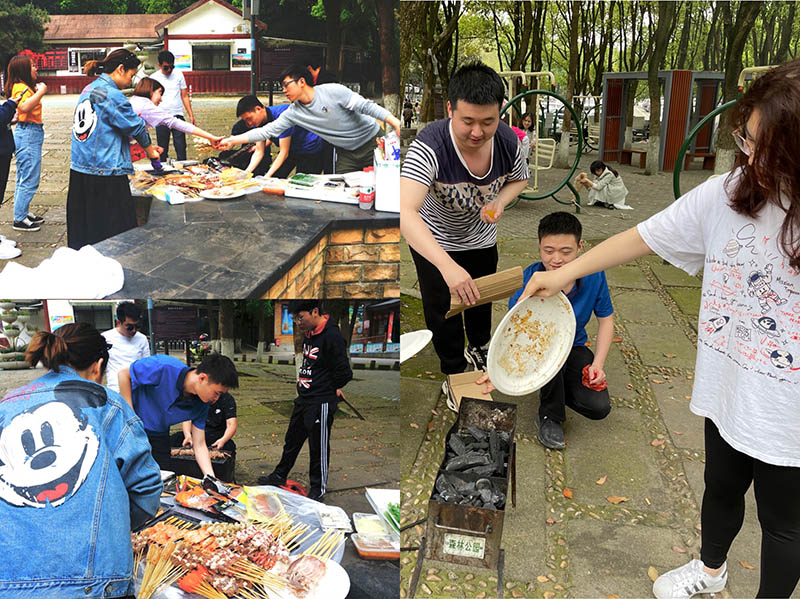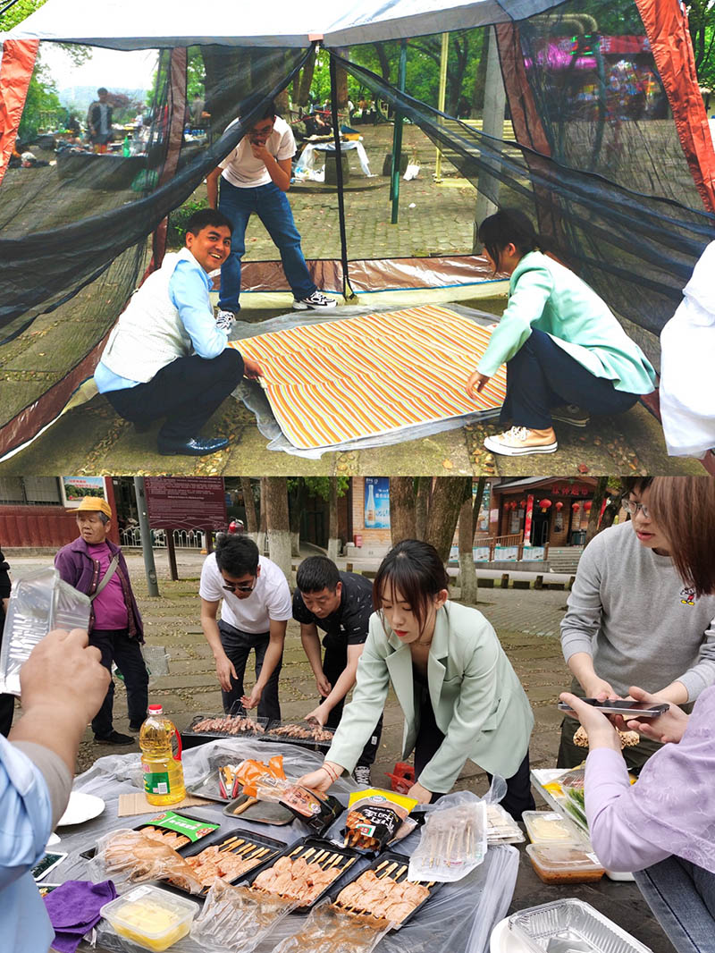 到达地点后,所有人主动加入劳动小组,我们一起烧火烧炭,布置桌子,搭帐篷,烧烤等。